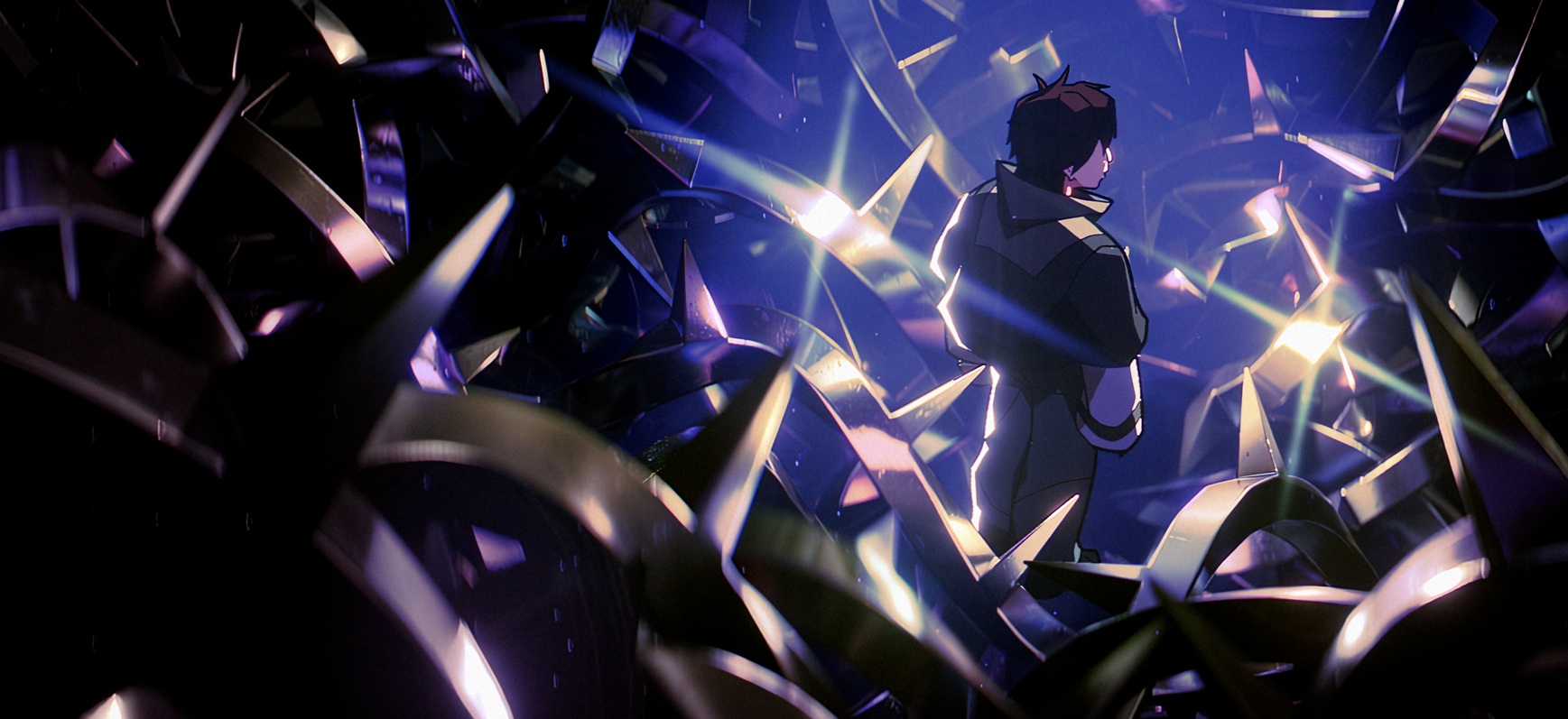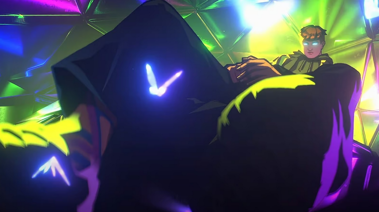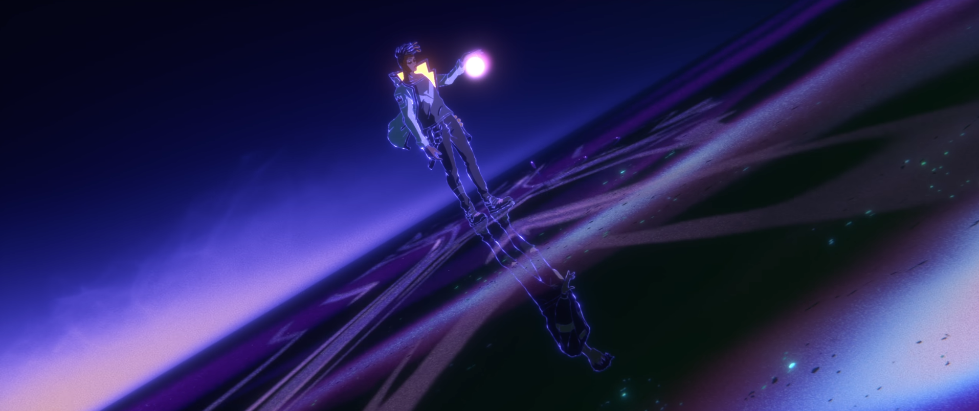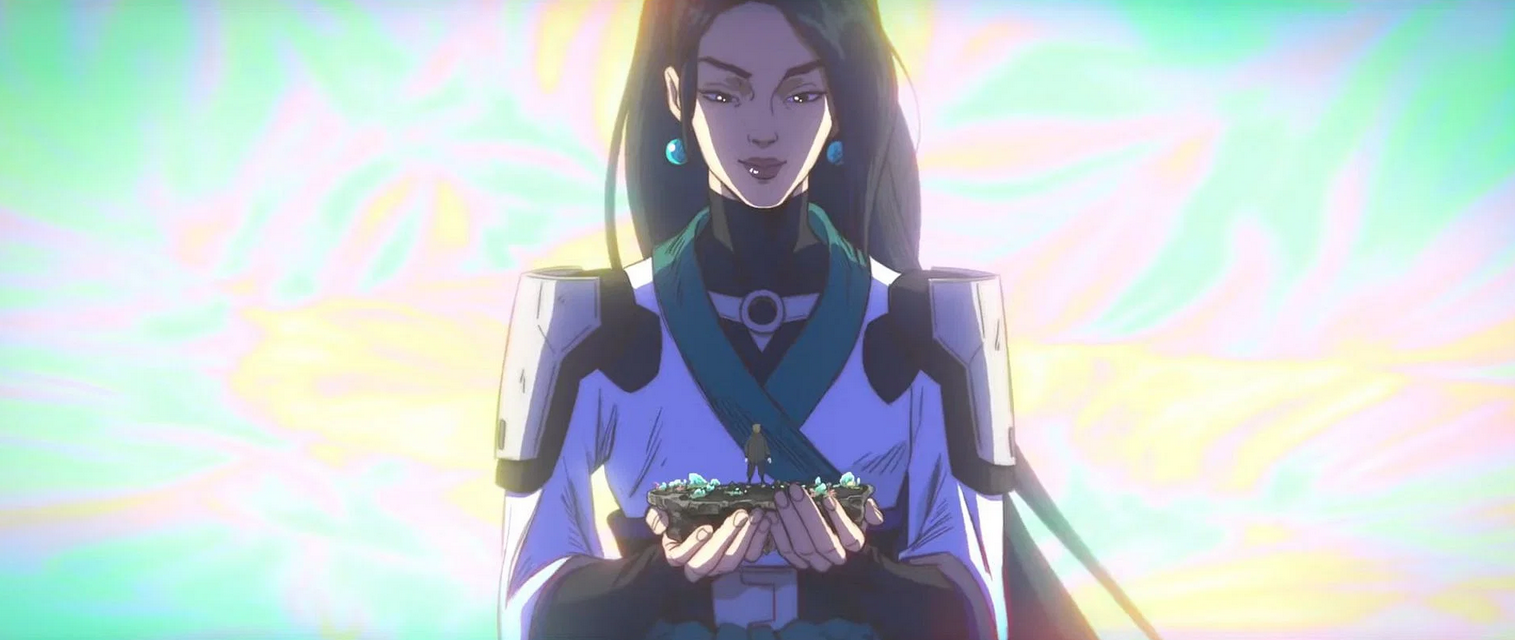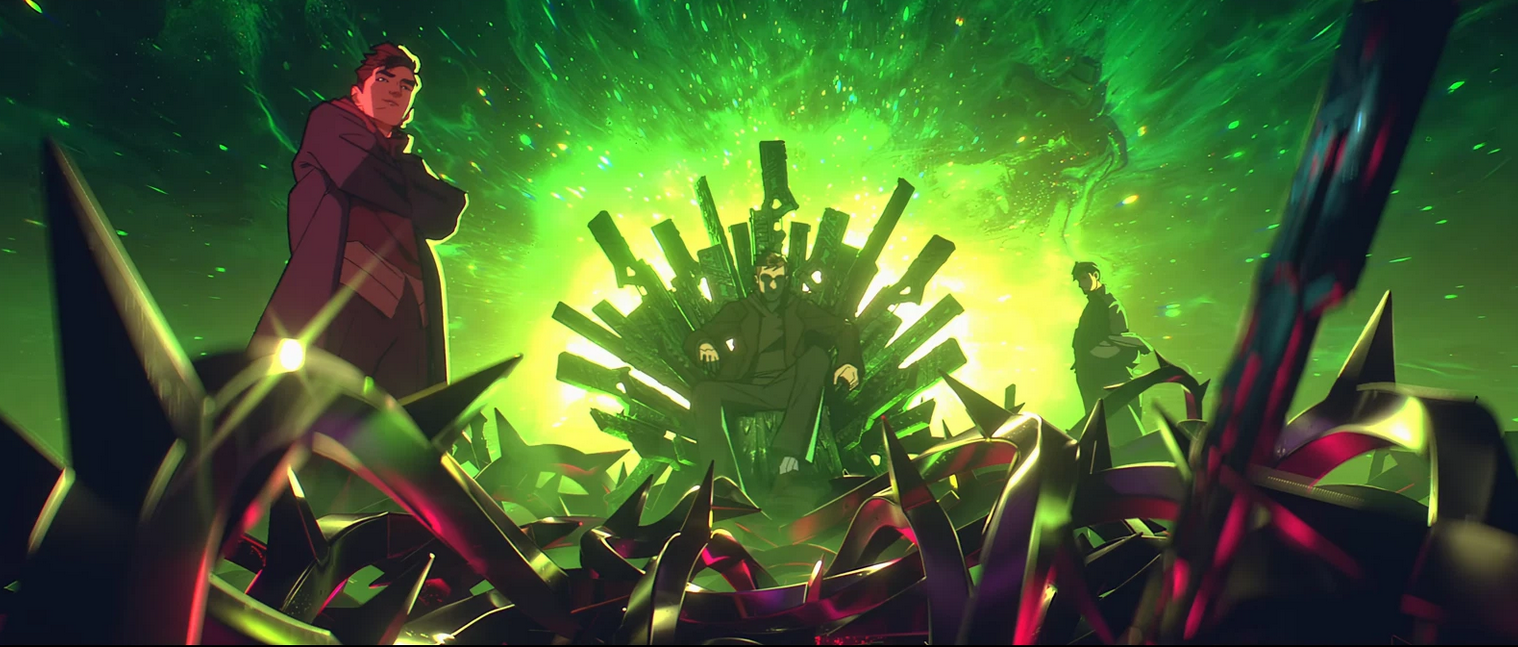 Then we come to 2024's "Superpower." A Riot Studios executive has said that their focus was on "not just making a music video, but making a video that also felt like a music video." That might've been to the detriment of the overall direction. A lot of the frames have extra polish and are layered with special effects: lens flares, holographic glows, retro TV–like filters, etc. There are many moments of god-like animated movement that really make you feel like you're moving along three dimensions to get the full shot, but these moments go by a little too quickly for a viewer to fully appreciate it.